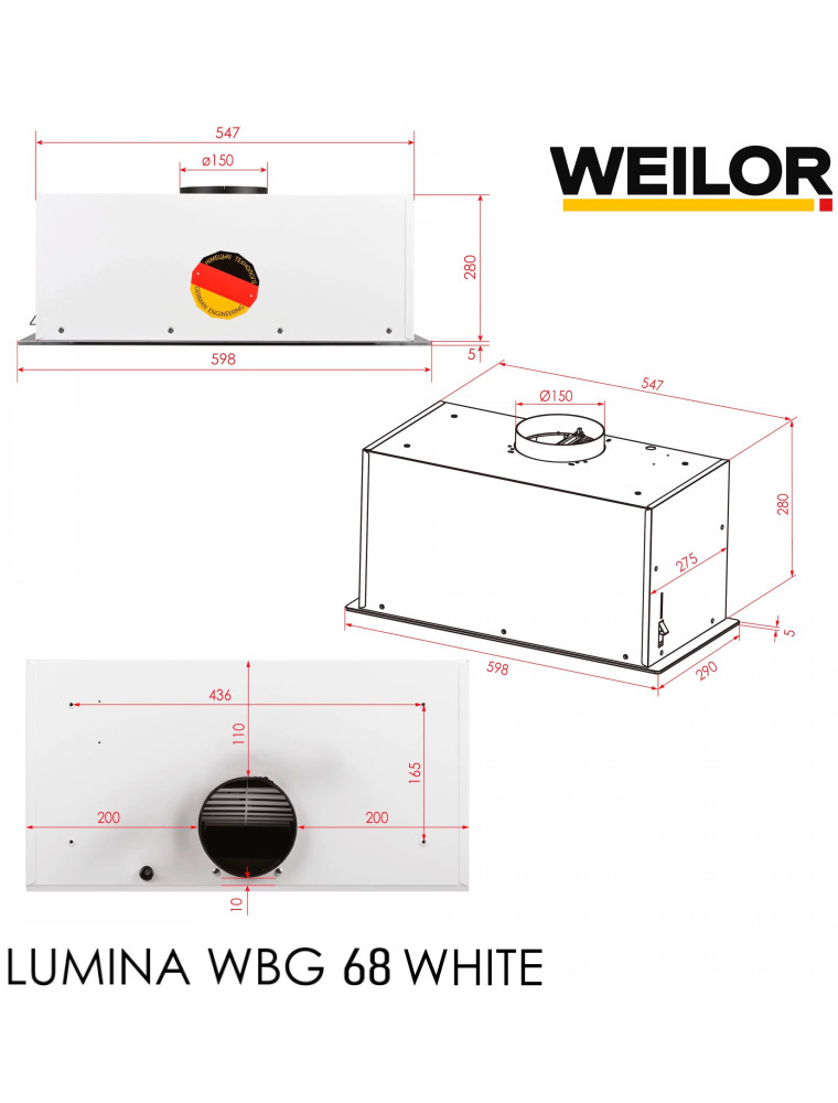 Характеристики Вытяжка Weilor Lumina LUMINA WBG 68 WHITE