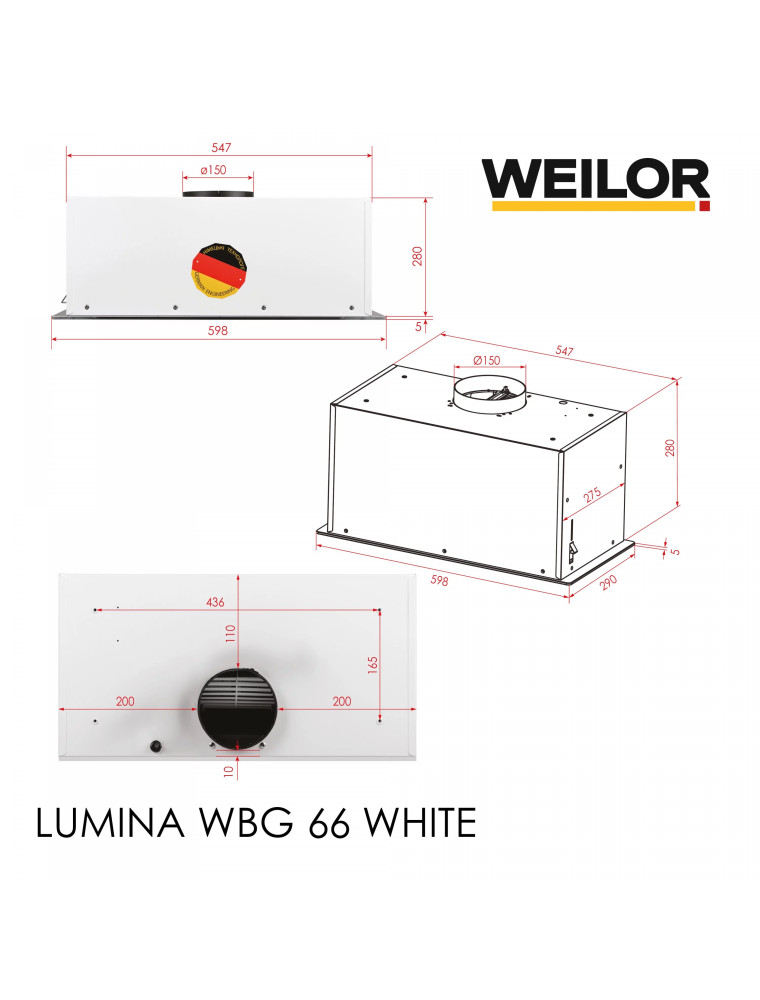 Характеристики Вытяжка Weilor LUMINA WBG 66 WHITE