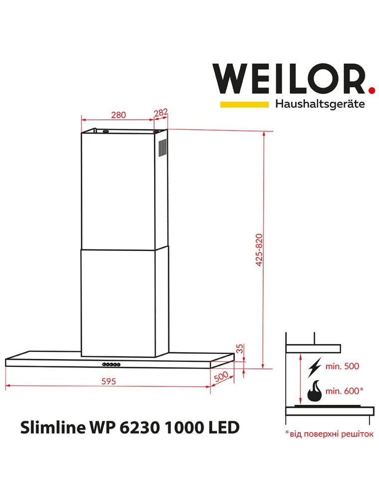 Характеристики Вытяжка Weilor Slimline WP 6230 WH 1000 LED
